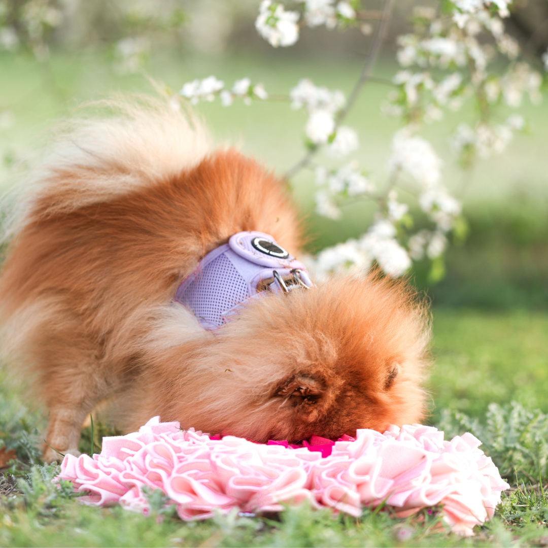 Czy Twój pies uwielbia węszyć i rozwiązywać pachnące zagadki? Mata węchowa dla psa KWIATEK to doskonały wybór dla czworonogów, które kochają zabawy angażujące ich zmysł węchu! Jej wyjątkowy, kwiatowy design sprawia, że nie tylko dostarcza psu intelektualnej rozrywki, ale również pięknie prezentuje się w domu.